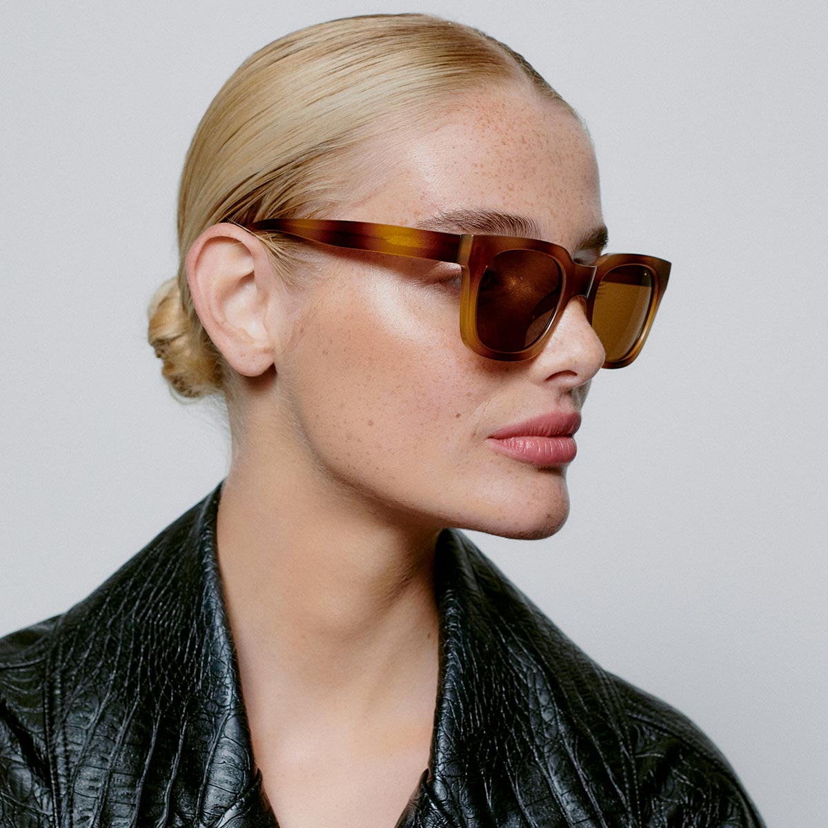 Danish design meets elevated style with A.Kjaerbede’s NANCY Demi Brown sunglasses.