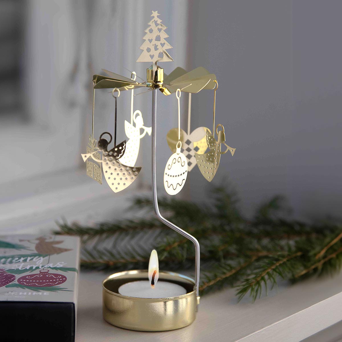 Add a touch of festive sparkle to your home with Pluto’s Christmas angel chime rotary candleholder. Place the included tealight inside and watch as the decorations gently twirl, casting a warm glow and enchanting dancing shadows around the room.