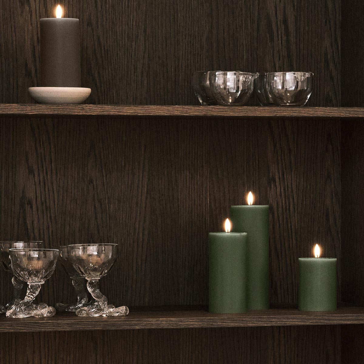 Add a touch of elegance to any space with the 15 cm LED pillar candle by ester & erik. Coated in real wax and available in their gorgeous Green Soil colour, this elegant pillar candle features the innovative ME&E Wick Glow Technology™. The patented LED wick glows like a real candle flame – you must see it to believe it!