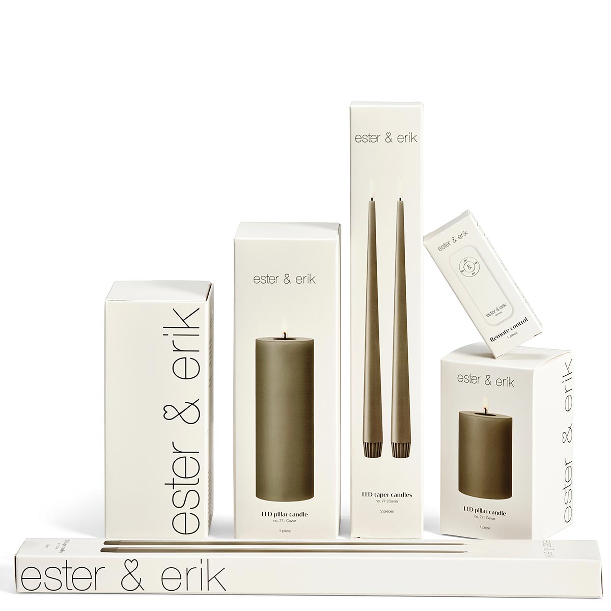 Add a touch of elegance to any space with the 20 cm LED pillar candle by ester & erik. Coated in real wax and available in their delightful Artichoke colour, this elegant pillar candle features the innovative ME&E Wick Glow Technology™. The patented LED wick glows like a real candle flame – you must see it to believe it!