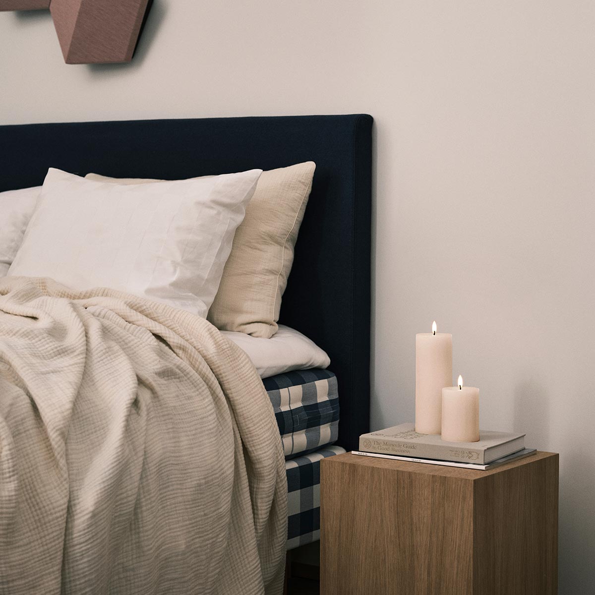 Add a touch of elegance to any space with the 20 cm LED pillar candle by ester & erik. Coated in real wax and available in their delicate Ice Latte colour, this elegant pillar candle features the innovative ME&E Wick Glow Technology™. The patented LED wick glows like a real candle flame – you must see it to believe it!