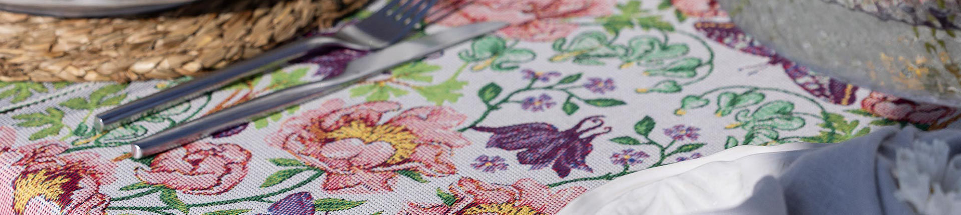 Fresh, floral, and full of charm, the Ekelund Blomkvittter hand towel features two sweet birds perched amidst an array of pink flowers on a soft yellow background, bringing a touch of springtime joy to your home.