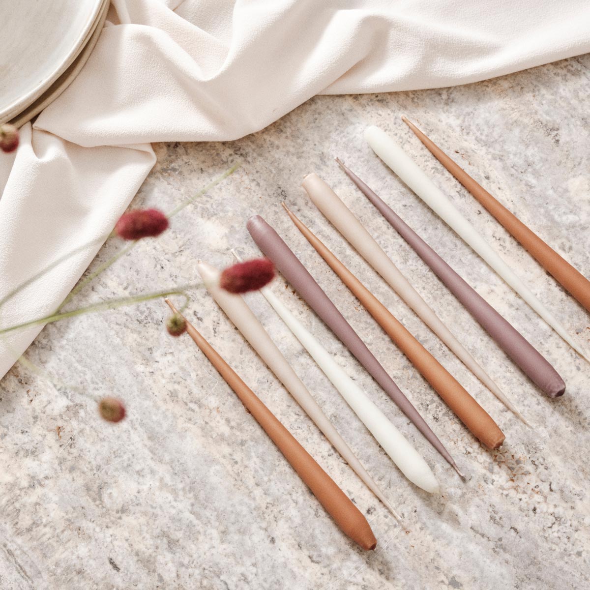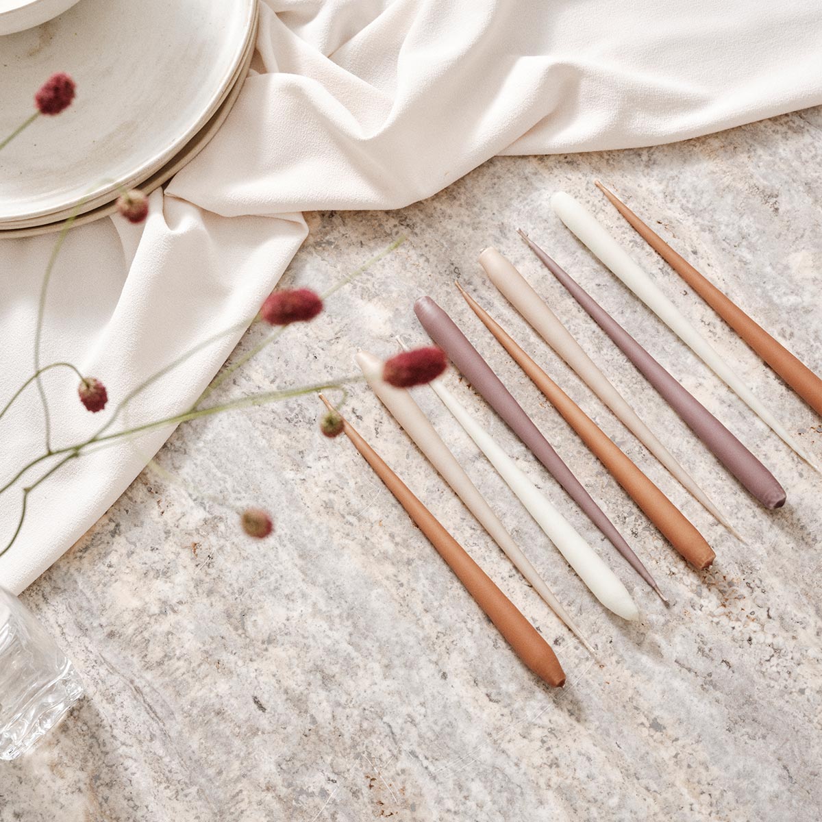 With their graceful and slender shape, Ester & Erik's matt tapered candles will surely bring something special to your table.