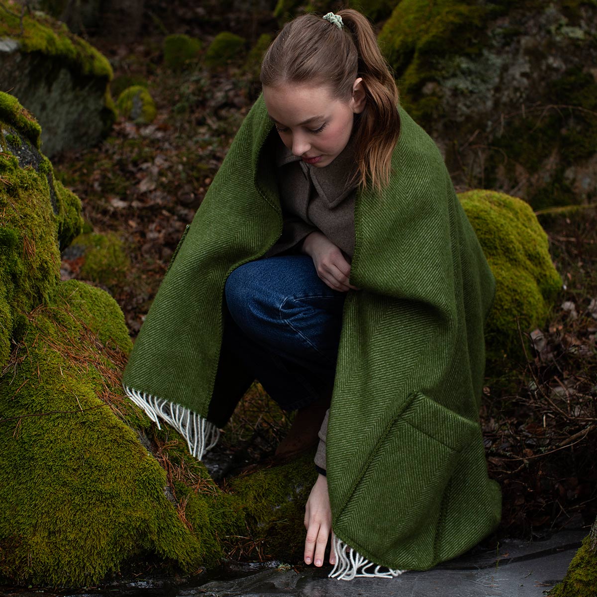 When the air turns crisp, Lapuan Kankurit’s Arvo pocket shawl in a striking olive green wraps you in effortless warmth and timeless style.