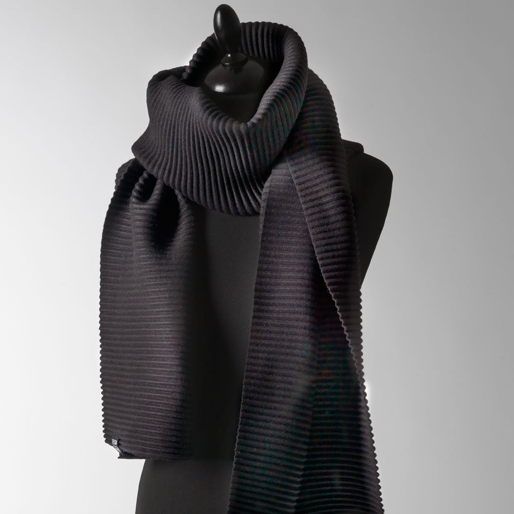 Fashion fades, only style remains the same. Created in 1997 by Marianne Abelsson, Design House Stockholm's long black Pleece scarf has changed very little over the years. The fabric is still pleated in Borås, Sweden.