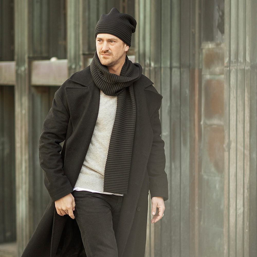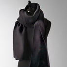 The long black Pleece scarf is ideal for anyone with a sensitivity to wool. It is lightweight, cosy to wear, generous in length, and will keep you beautifully warm as the temperatures plummet.