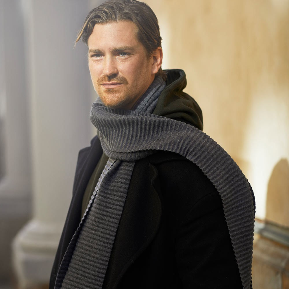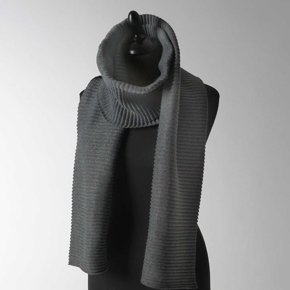 The long dark grey Pleece scarf is ideal for anyone with a sensitivity to wool. It is lightweight, cosy to wear, generous in length, and will keep you beautifully warm as the temperatures plummet.