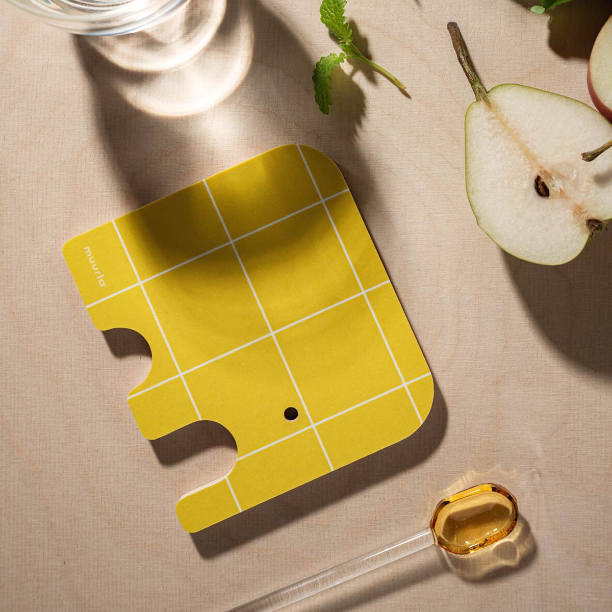 Muurla's little elephant coaster brings both style and smiles, with a bright yellow gridded side and a natural birch plywood reverse for those minimalist moments.