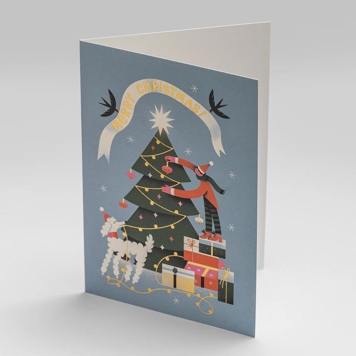 Celebrate the season with this delightful pack of 5 Lagom Design Star Topped Tree Christmas cards designed by Tania Yakunova.