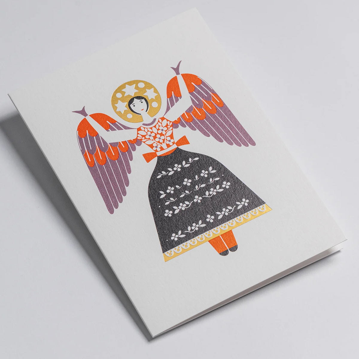 Celebrate the season with this delightful pack of 5 Lagom Design The Nativity Angel Christmas cards designed by Alexander Girard.