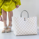 The eye-catching handwoven design in elegant pale grey and white adds a stylish touch, while the sturdy shape and strong handles make it easy to carry and easy to love.
