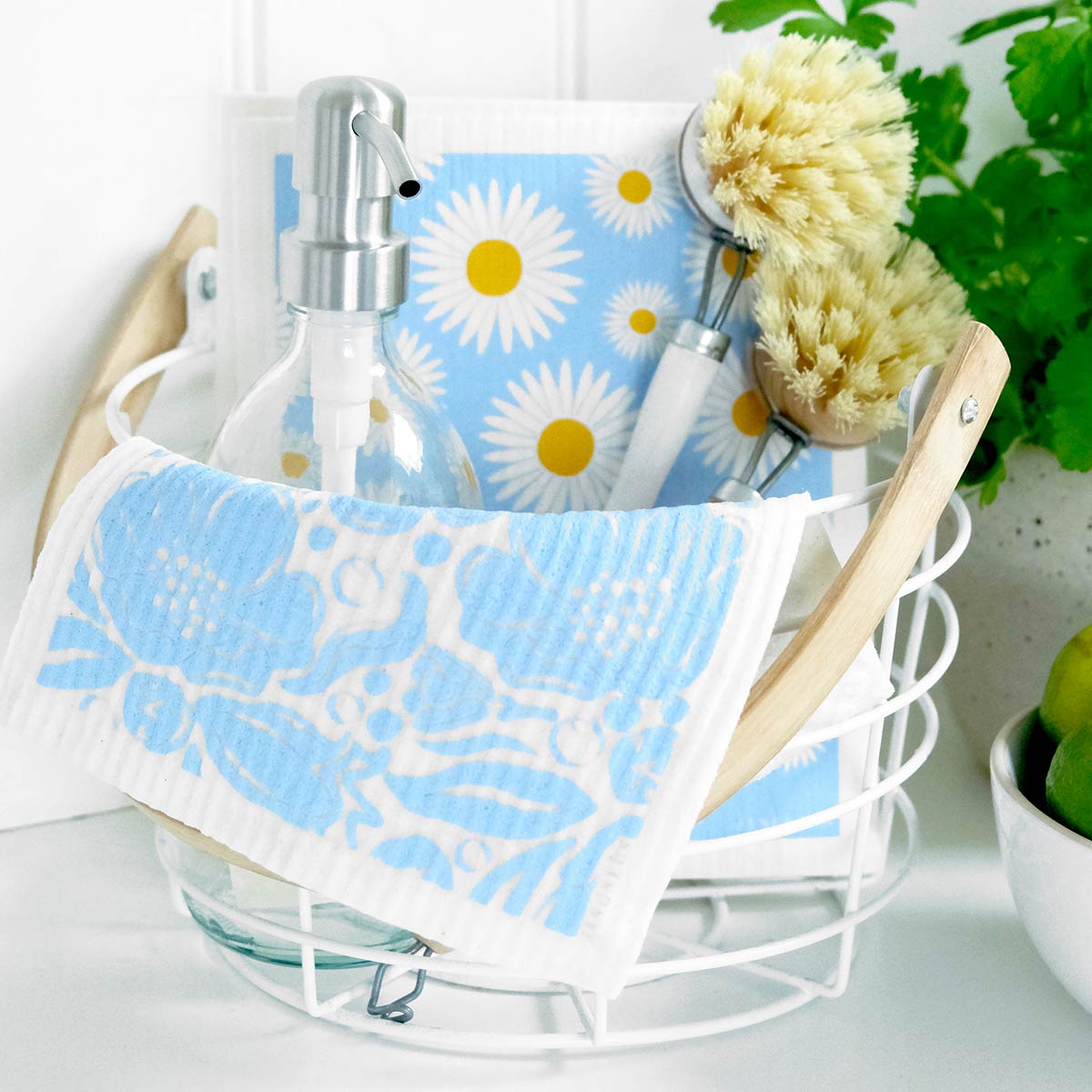Ditch dull dishcloths and brighten your sink with the pretty blue and ochre Daisy cellulose cloth from Jangneus, bringing Scandi style and colour to your kitchen.