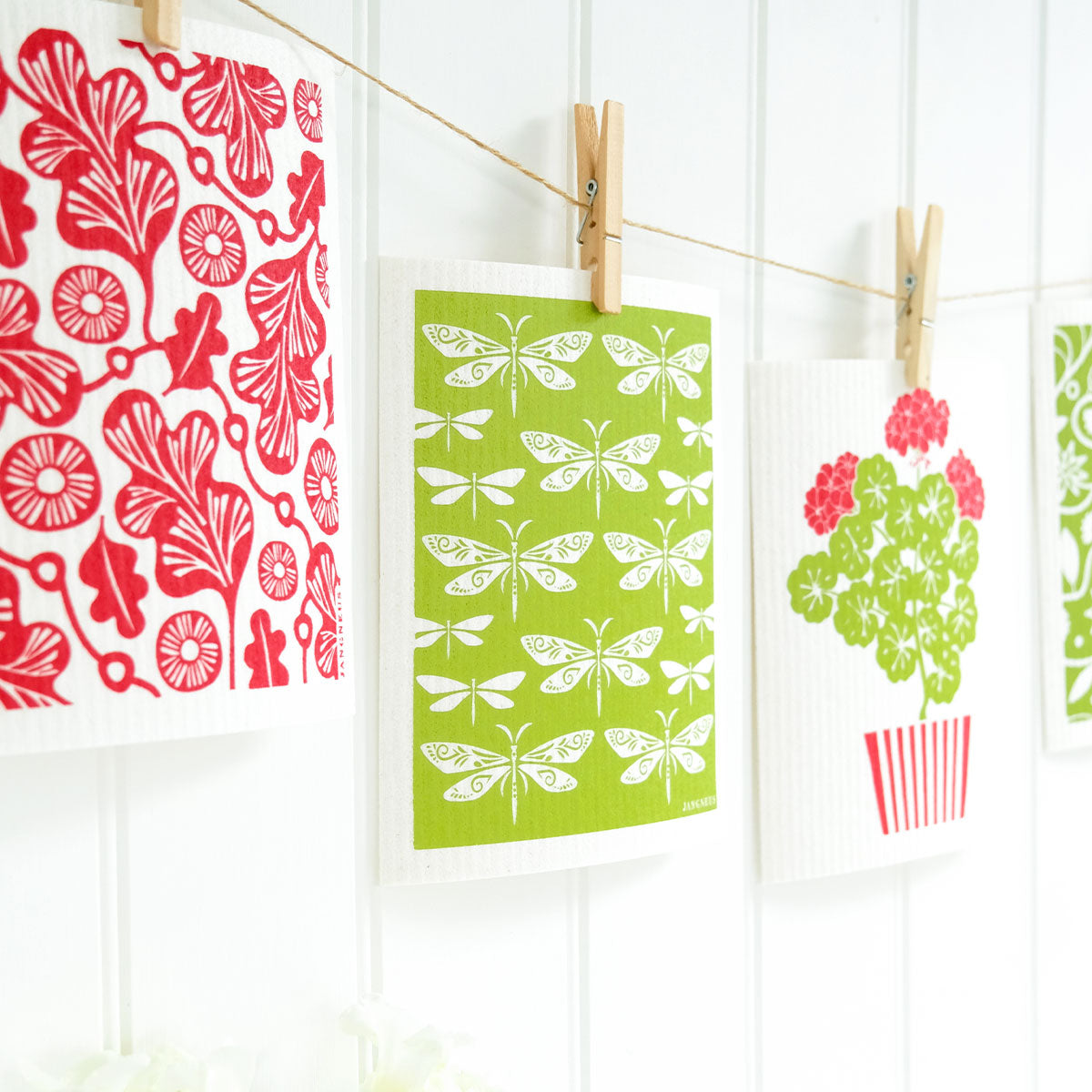 Ditch dull dishcloths and brighten your sink with the striking Green Dragonfly cellulose cloth from Jangneus, bringing a little Scandi style to your kitchen.