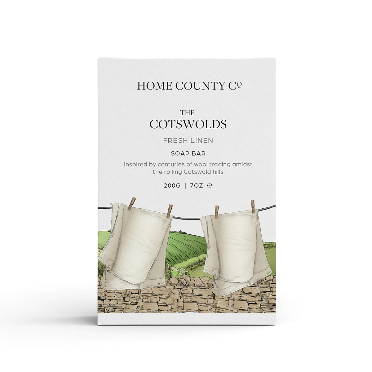 Home County Co.’s 200g Fresh Linen soap bar is inspired by centuries of wool trading that once shaped the rolling hills of the Cotswolds. Each lather wraps you in the comforting scent of crisp, sun-dried linen - clean, airy and soothing.