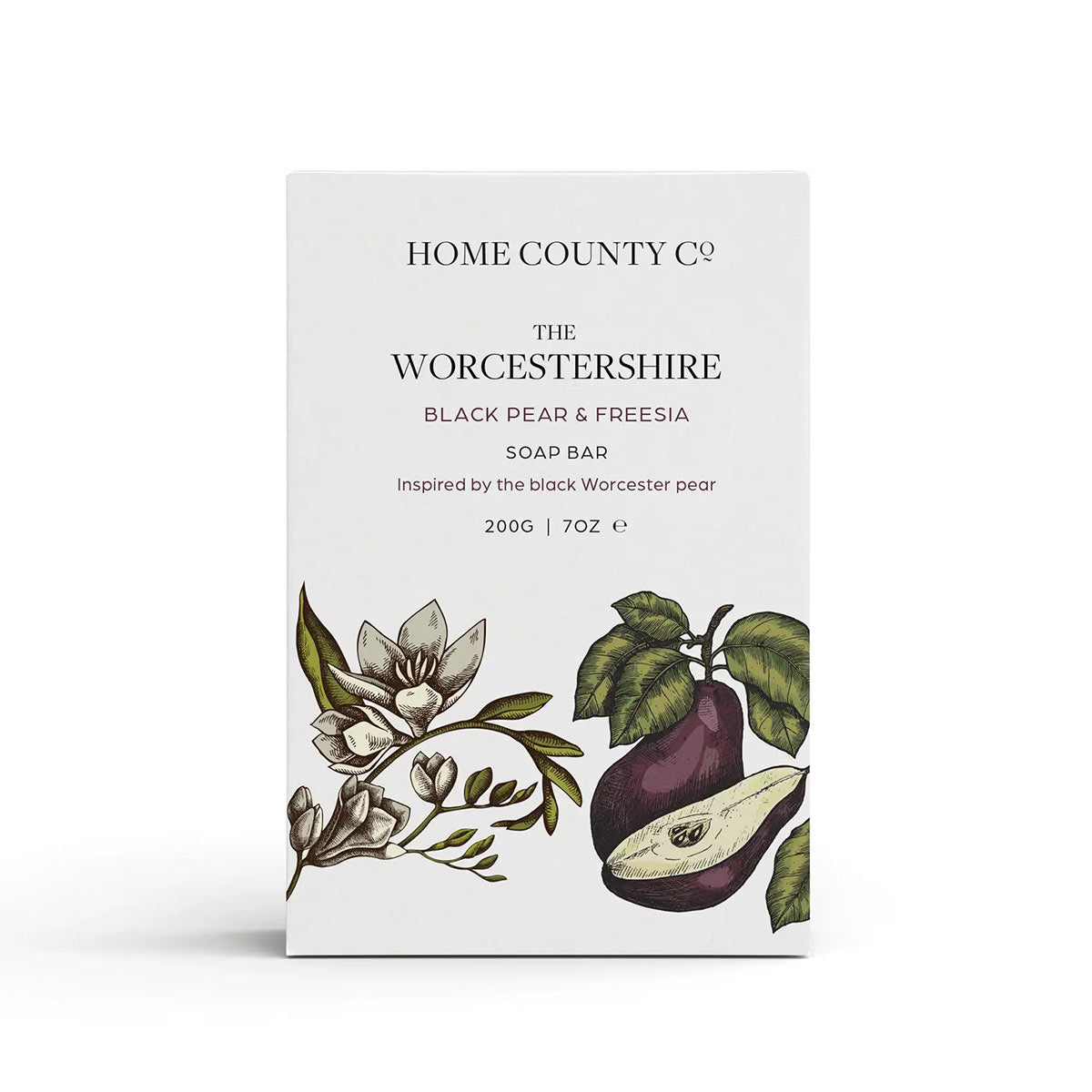 Home County Co.’s The Worcestershire – Black Pear & Freesia 200g soap bar is inspired by the historic black Worcester pear, a symbol of Worcestershire. Picture late-summer orchards, tall pear trees arching overhead, their dark fruit hanging among delicate freesia blossoms. Each lather releases a sweet, mellow blend of ripe pear and soft floral notes, bringing the charm of the countryside into your daily routine.