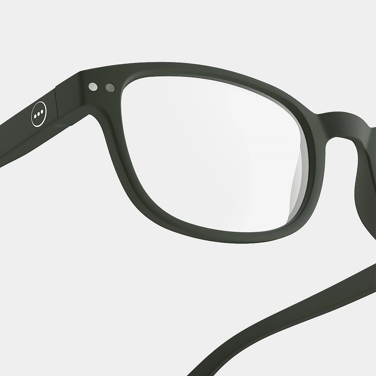 Classic and understated, with a touch of seriousness - Model #B Kaki Green is your go-to for minimal design with maximum comfort. With a sleek silhouette that sits discreetly on the bridge of your nose, these unisex reading glasses flatter every face while delivering everyday functionality.