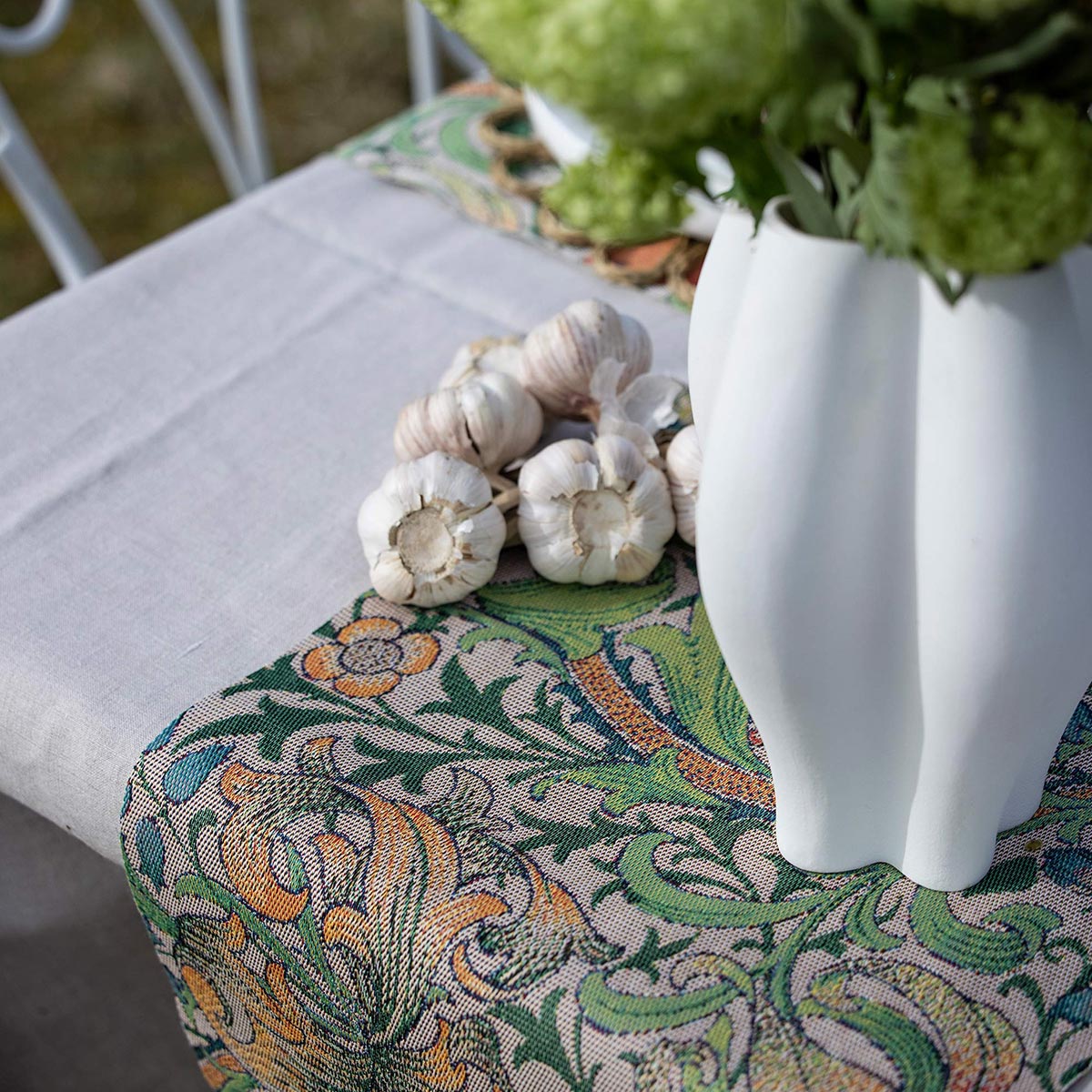 Soft, absorbent, and sustainably made in Sweden, the Golden Lily towel is as practical as it is beautiful. A handy hanging loop makes it easy to display, whether adding a flourish of classic English design to your kitchen or a touch of Arts and Crafts charm to your bathroom.