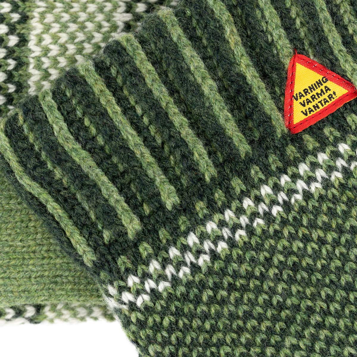 - Useful to know: One mitten features a tiny yellow warning triangle - "Varning: Varma Vantar!" - "Warning: Warm Mittens!"