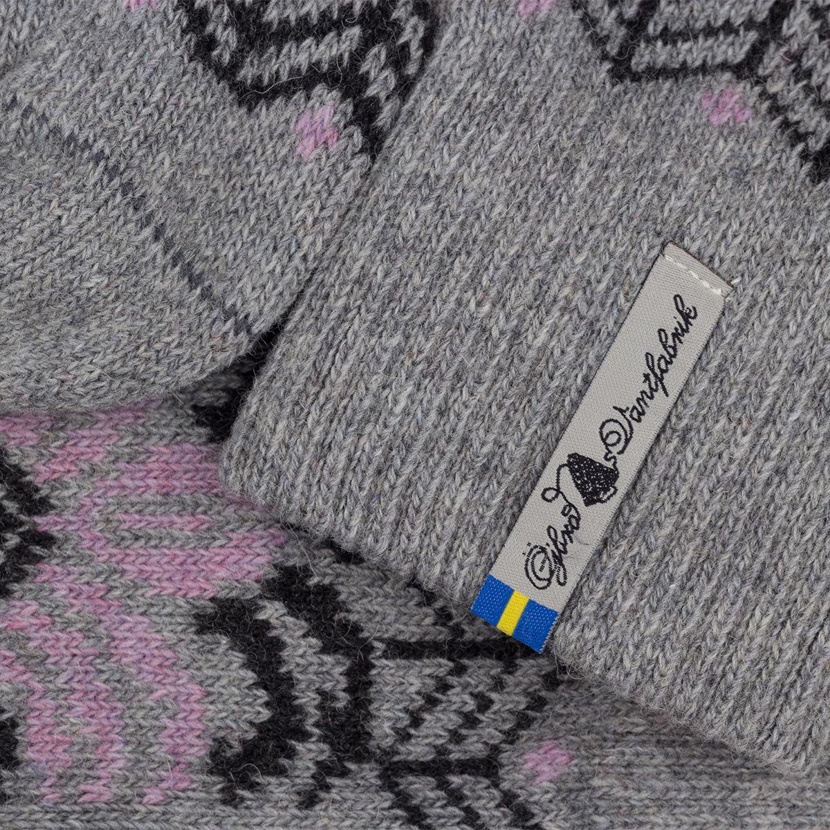 Designed by Åse and Ted Öjbro, these irresistibly cosy socks are knitted in Sweden using traditional patterns and colours. The Fager Iselin design, featuring the fair lily motif in iris, black, and grey, pays homage to the women who once hand-embroidered their mittens with delicate floral details.