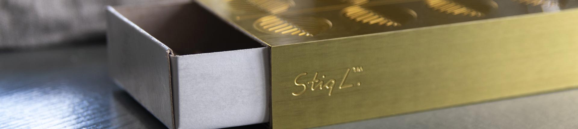Meet Mikey, Lisa Larson’s beloved striped cat – now in a shiny gold metal hanging decoration by Pluto Design. Complete with a red ribbon, this timeless little feline figure is perfect for hanging on the tree, brightening up a window, or gifting to someone special.